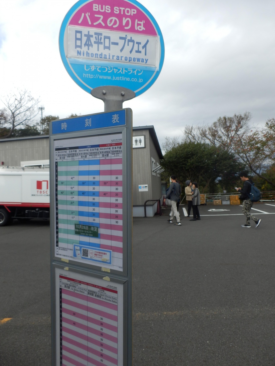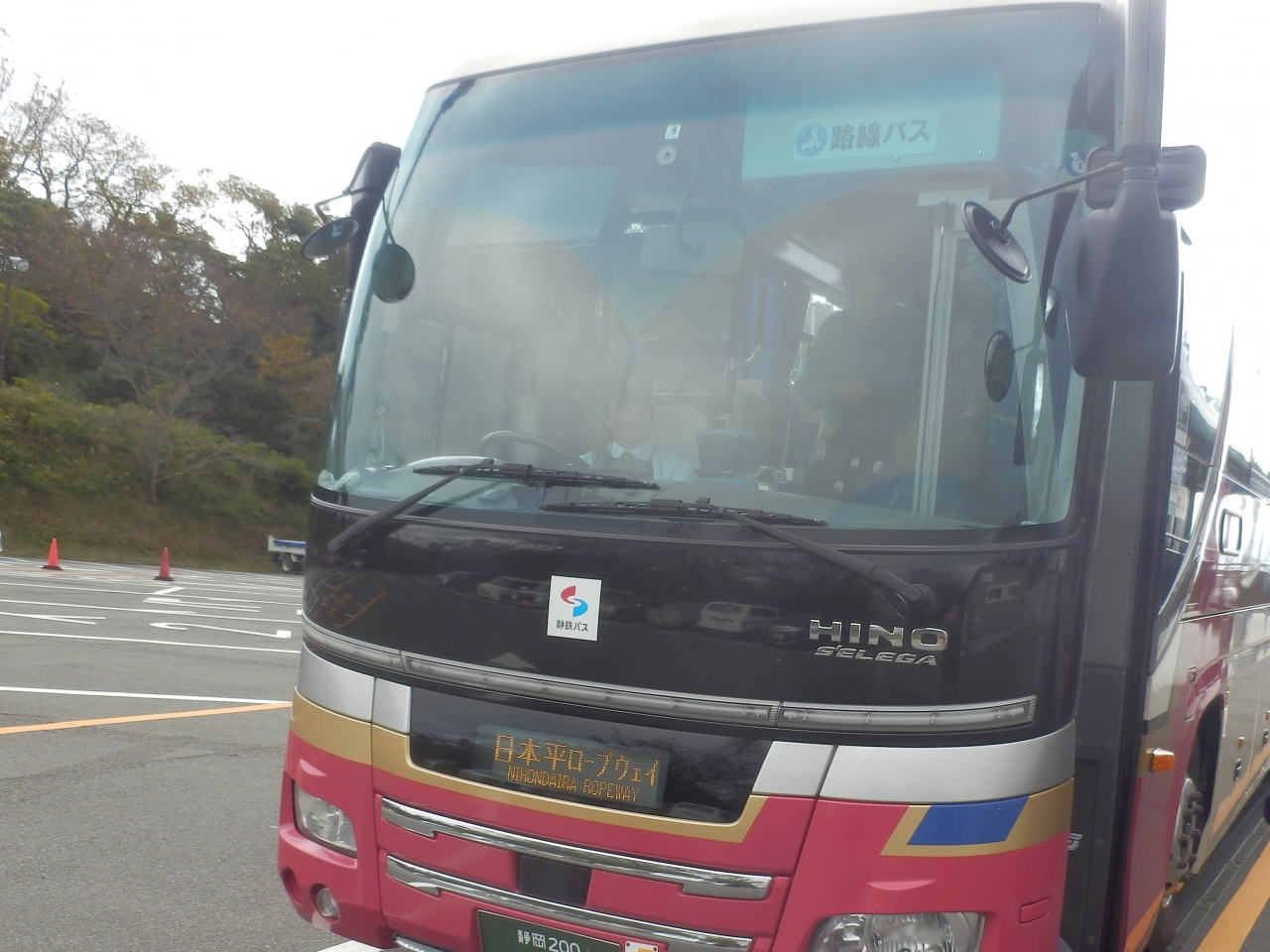 日本平から久能山東照宮へ散策で利用、JR静岡駅前から日本平ケーブル前行きに乗車、かなり有名観光地名のに一時間に一本(平日)しか運行していないのには困った、お客も途中にある大学までは学生がいたが以降は数人の状態。これでは一時間一本も仕方がない、路線バスだが観光バスタイプの高床式の車輛、日本平ケーブル乗場の直ぐ前で乗降できます