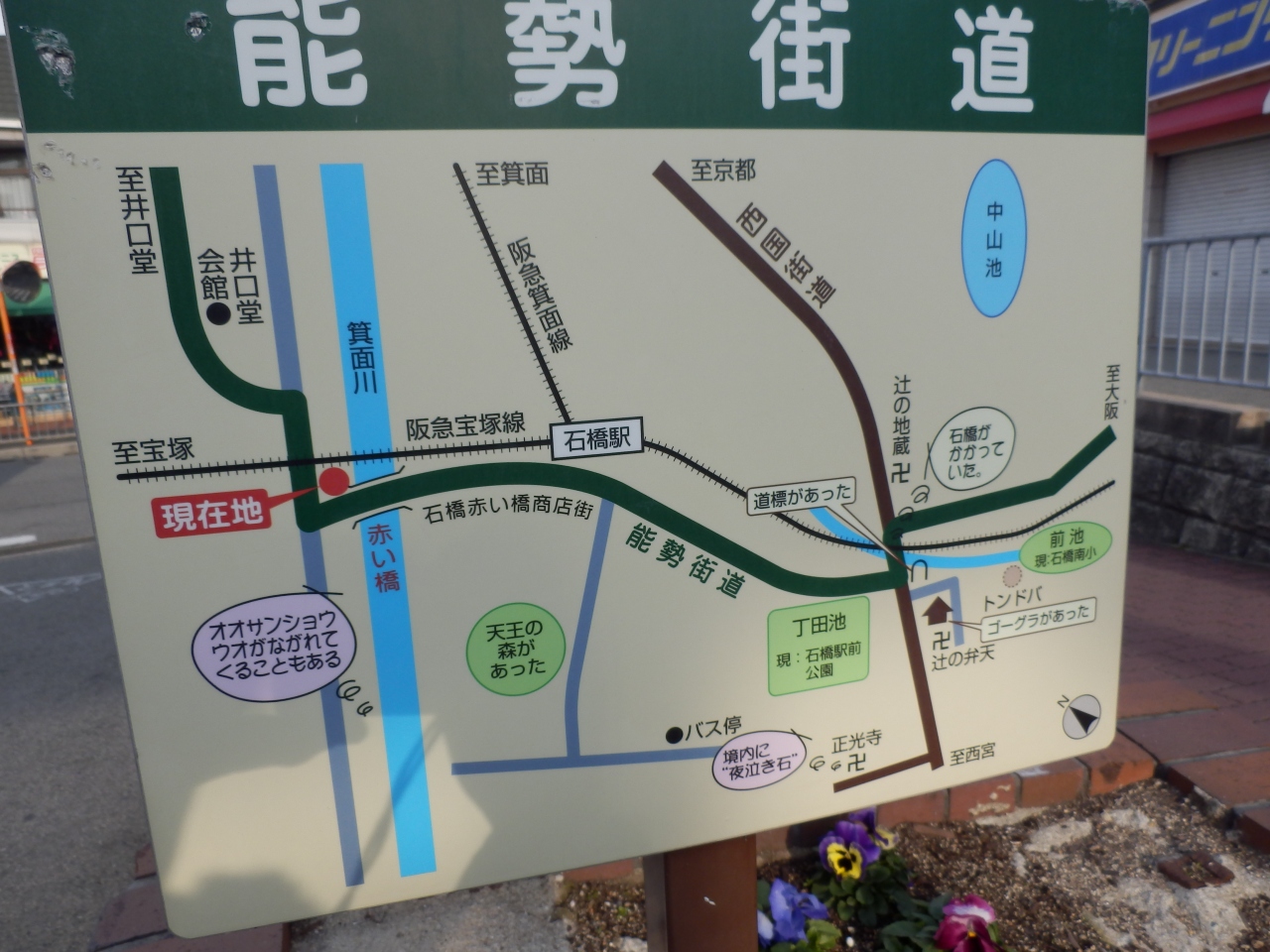 大阪市内の梅田付近から能勢を経て亀山までの旧街道、全部を体験することなど到底出来ない、気持味わおうと阪急宝塚線石橋駅付近から出発したが位置がまず不確か、国道176線に沿って池田方面へ歩いたしかし国道では街道の雰囲気などゼロ、暖かくなったときもっと川西の一の鳥居付近から散策することにする、能勢街道は阪急宝塚線にほぼ沿って北上して池田を抜けると能勢電鉄にそって通じている