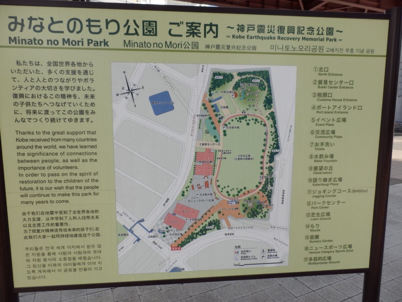 神戸震災復興記念公園、別名みなとの森公園と呼ばれている、元はJR神戸港貨物駅だつたので広大な敷地に各種の屋外スポーツ施設が整備されており、南半分が緑化され公園となっていた。貨物駅だったことを記す鉄道施設もごく少しのこされている、