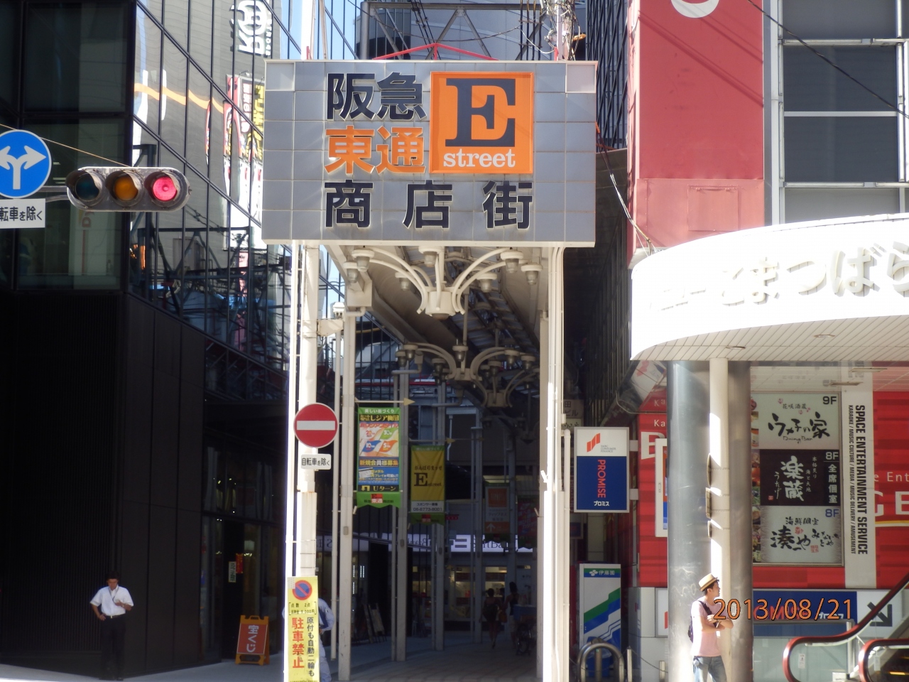 阪急東通商店街入り口までは大阪駅から徒歩10分,阪急電車だと5分程度でいける庶民向けの商店街、飲食店、古本店、サウナ、衣料品など実に雑多な店が立ち並んでおり繁栄を極めていた、休日は若者が大半を占めており夕方から夜間は一杯飲みたいおっちゃんの街に変身しそうだ、