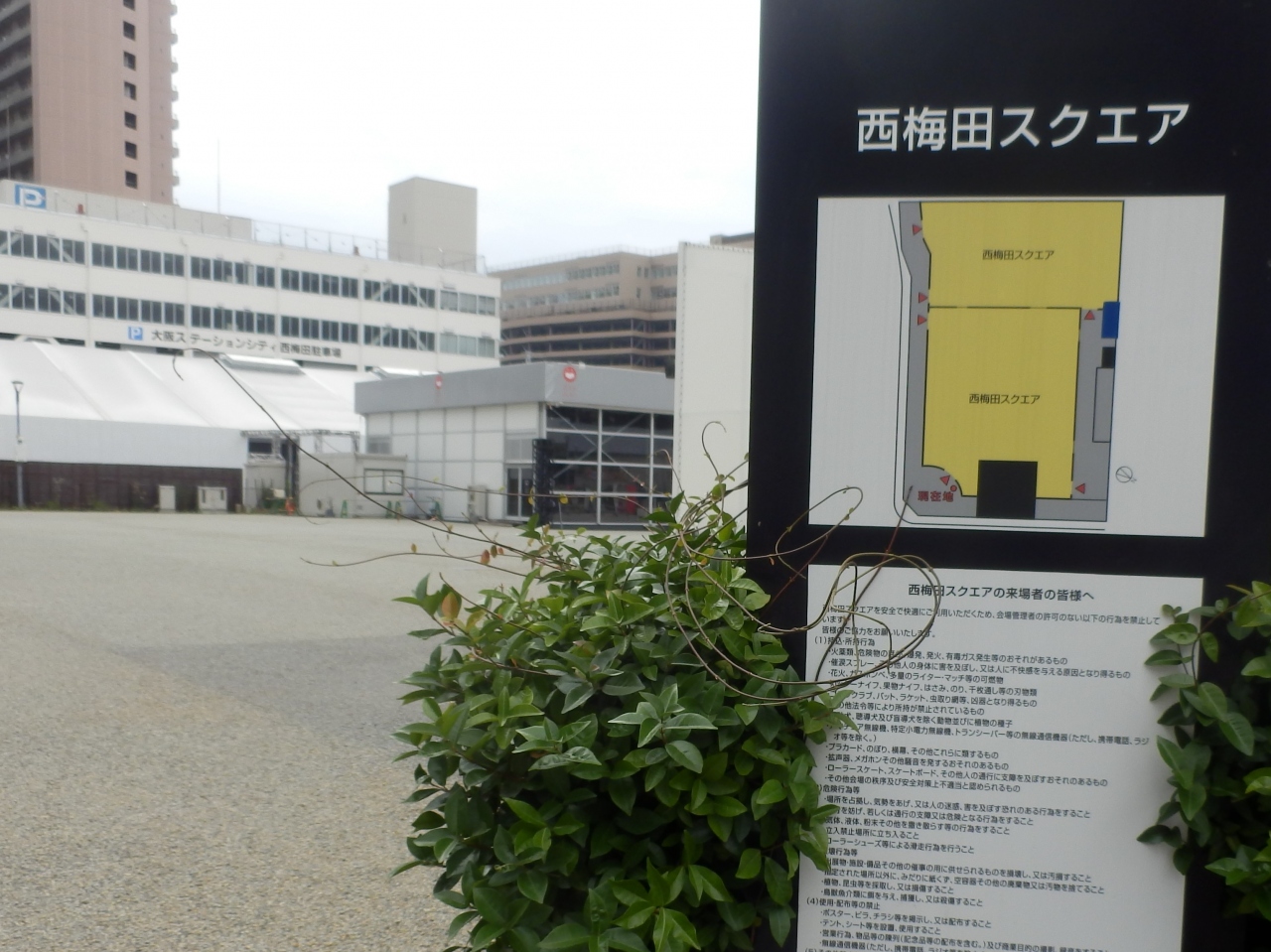 JR大阪駅の直ぐ西側に広がる広大な空き地、15年ほど前は大阪中央郵便局でした、常設の建物は無くイベントが開かれる場合は架設のテントが張られています、デパートで開催する物産展よりも規模が大きく豪快な呼び込みがあって近くにくれば立ち寄りします、今日は何もなし、サッポロビールが満天の星の元でビアホールを開催が今年は無いのかなと呑み助の友人には気がかりな様子でした、JR大阪駅からは桜橋口改札を出てすぐ右折し信号を渡った所です 追記::広場西隅で(仮設建物)公演していた吉本西梅田劇場も2019/8/末頃に終了されるらしいです