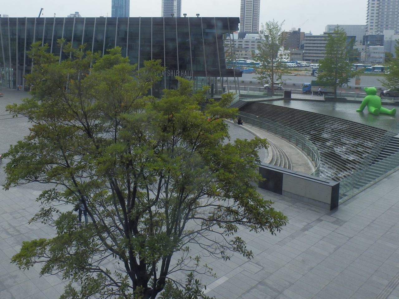 うきた広場のコンセプトは水のせせらぎと緑豊かな街がテーマです、JR大阪駅北側とグランフロント大阪南館前にある広場で緑も少し濃くなってきましたが樹木の数が僅かなので木陰での休息には物足りない、人工のせせらぎの水音ははっきり聞こえてきますが平日昼なので10名程度がせせらぎの階段で歓談している程度です。、