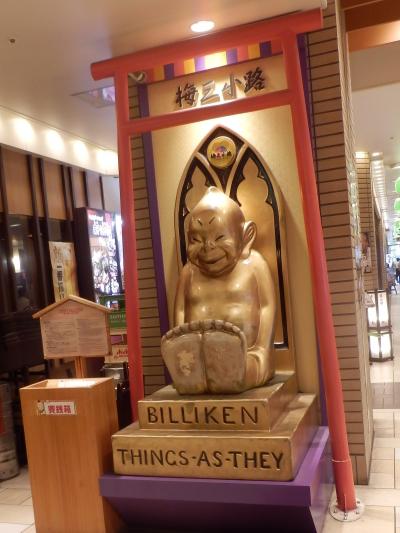 JR大阪環状線高架下にある商店街、通路の左側が飲食店、右は主に携帯、パソコンなどの関連機器店が軒を連ねています、通路の途中にビリケンさんが居られるヒケリケンむさんは大阪の通天閣のマスコットなのだが複製品が置かれている、毎年七夕の時期になるとここで七夕に飾るシオリを貰い笹に吊していたが今年は無くなったこのシオリは天棚機比売大神(あまのたなばたひめのおおかみ)様のお払いを受けていたので無くなったのは残念です