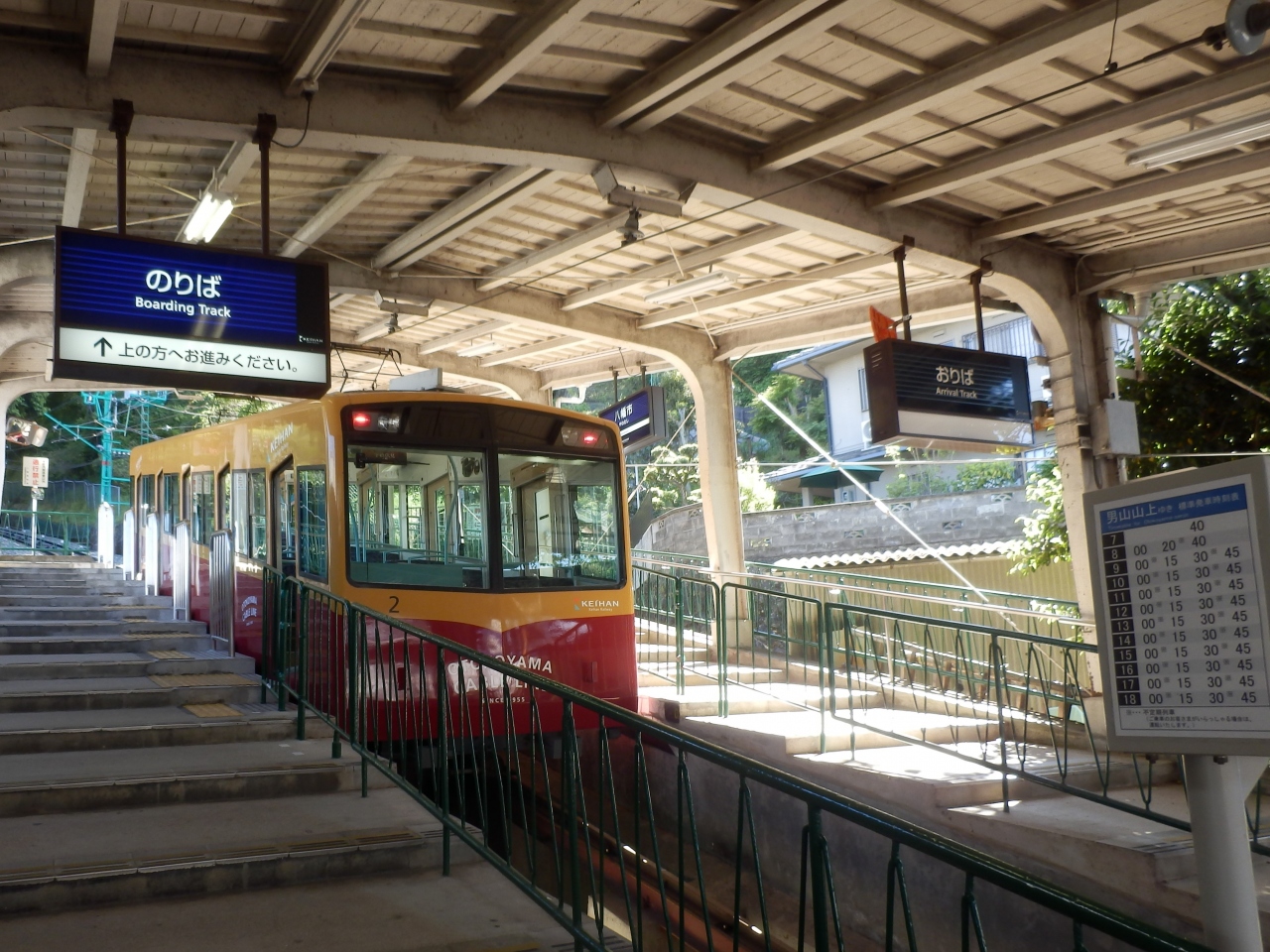 石清水八幡宮へ参拝は麓の頓宮から表参道を徒歩で登るのと男山ケーブル利用の方法がありますが徒歩では40分以上かかり体力も必要ですからケーブルーに乗りました、5月の平日だったのでお客は2名、毎時00、15、30、45ですが、15と45分発はお客が0なら運行しない このケーブル途中の谷はすごく深くケーブルとしては日本最高の高度だそうです。乗車時間はわずか3分で男山山上駅に着きます。2019/5月中旬からリニュアルの為運休になりますのでそれまでに参拝を済ませておきました