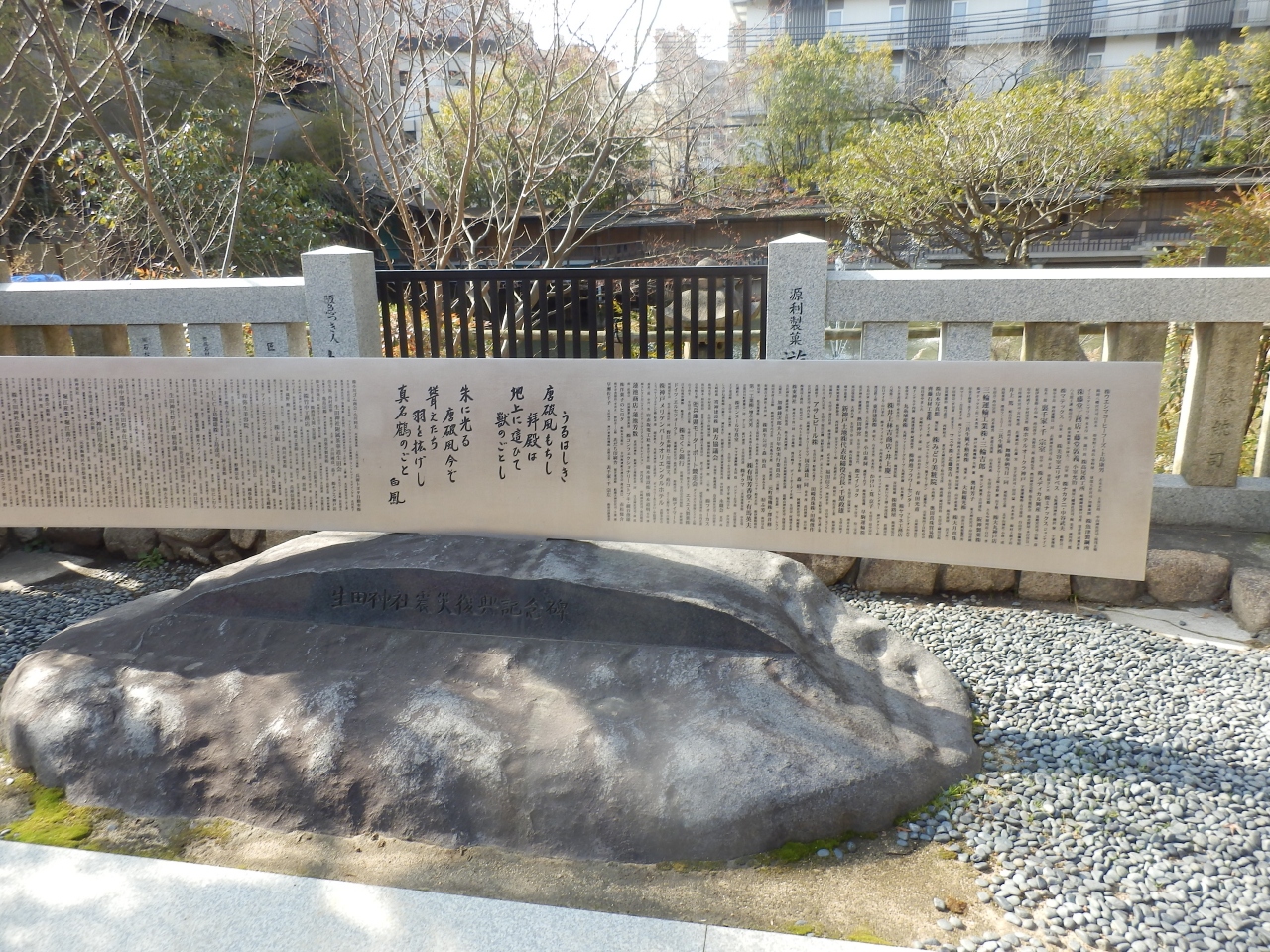 生田神社境内に建てられた阪神淡路大震災から復興を祈願する石碑