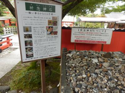 昔ある貴人の乗った牛車?がこの神社前を通行中車が倒れて車が折れたので車折神社と呼ばれるようになったとされています、おとぎ話のような言い伝えに感じますが起こり得ることでもある、神社名称の起源はさておき商人がこの神社の小石を持ち帰り家内に納めて満願の時持ち帰った石数を2倍にして神社にお返ししたとする習わしは現在も続いています境内に沢山の願いを書いた小石(直径5cm程)が奉納されていました、境内社に芸能神社が祀られており芸能関係者から朱色の立札???(正式な呼び名判りませんので添付写真見てね)が献上されておりその数500枚はありそうで壮観でした、嵐電(京福電鉄)車折神社駅を下車するとすぐ前が神社入口鳥居です
