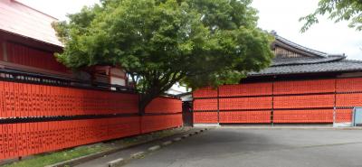 車折(くるまざき)神社の境内社で芸能神社境内には献上された芸能人、演劇関連会社などの名前がびっしりと朱色の板に書き込まれて掲げられていたのは壮観であった正確に何枚かは判らないが400から500枚はありそう、知った人の名前はないかと少し時間をかけて探したが見つからなかった宝塚の肩書の方は多数見かけたが知る方ではなかった芸能関係者は縁起をかつがれるのですね、嵐電(京福電鉄)車折神社駅を下車するとすぐ前が車折神社入り口鳥居、境内を50M進むと左側に鎮座されています