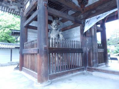 仁和寺の正面入り口が二王門、ここに来るまでは”仁王門”と思っていましたが”二王門”でした、門の入り口左右に厳つい顔をした金剛力士像が睨みつけています、でも顔をよく見ると案外優しそう、”ようこそ仁和寺にお参りしてくれました”