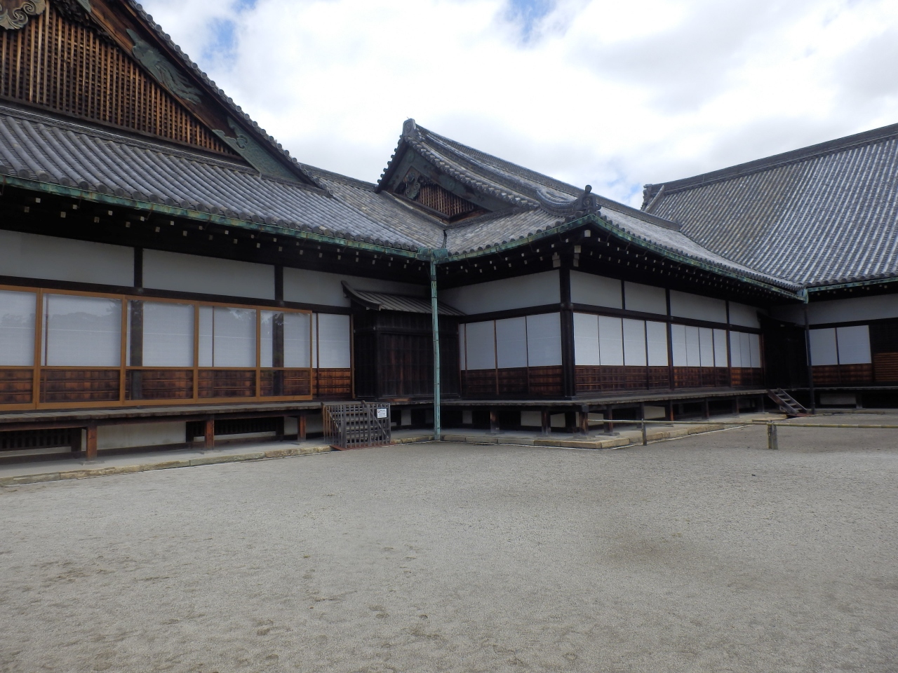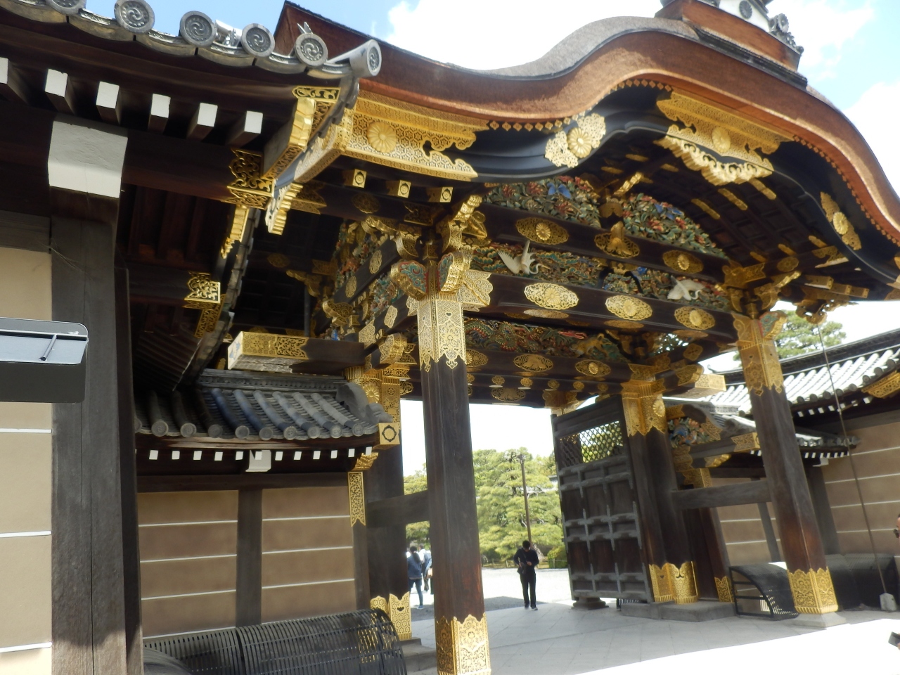 国宝に指定されている元離宮二条城二の丸御殿内を参観しました、唐門から入り御殿入口で履物を脱いで室内へ、最初の部屋はお客の待機所であった遠侍(7室程),式台、大広間、黒書院.白書院等6棟33室、畳数約800畳、廊下を時計回りに白書院まで行き各室の反対側廊下を元の遠侍へ戻るコース、各室には障壁画が多数残されて重厚な佇まいが感じられた。殿内参観者の半分は外国の人で、日本古来の歴史風習伝統を最も理解してもらえる場所てあったと推測します、各地のお城や庭園を見て回ってきましたがこれほど素晴らしい施設は経験していません