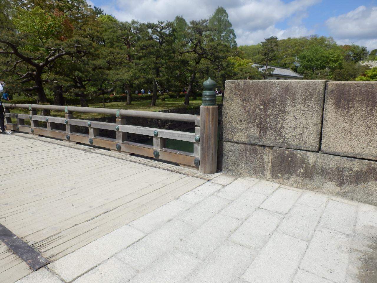 二条城の本丸を敵の攻撃から護る重要な櫓門、お城の本丸といえば城の中枢の建物なので櫓門も他城ではかなり立派な建物が構築されていますが二条城の規模にしては貧弱に感じました、櫓の直前にある内堀に架かる東橋は木製、敵の攻撃時に橋を落として本丸への進入を防ぐ為だった、ここを潜ると約20段程の登り石段がある、石段の上は全面フラットな本丸庭園が広がる、櫓の二階と本丸の高さが同じになっている、二の丸との差はこのあたりに見受けられる、