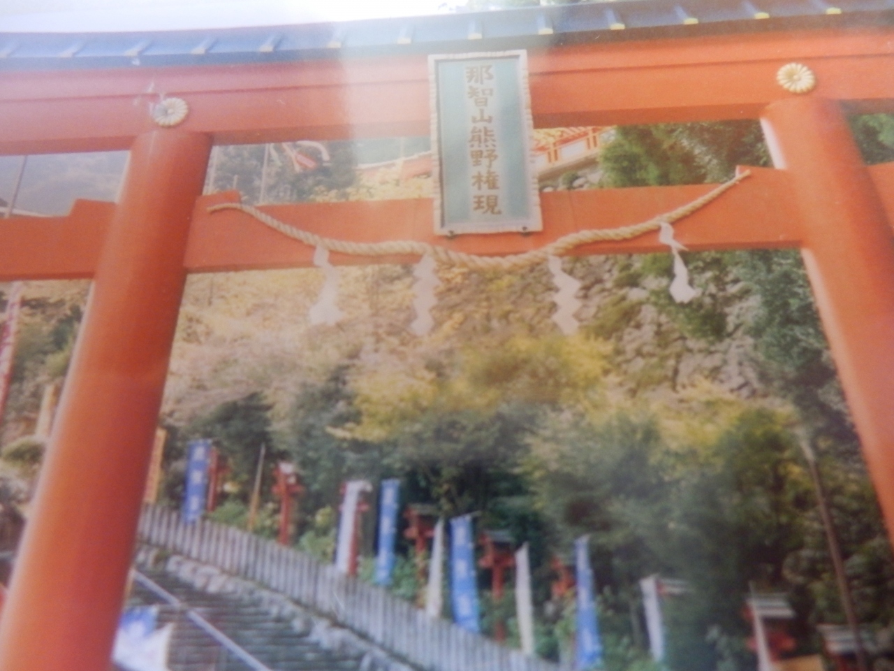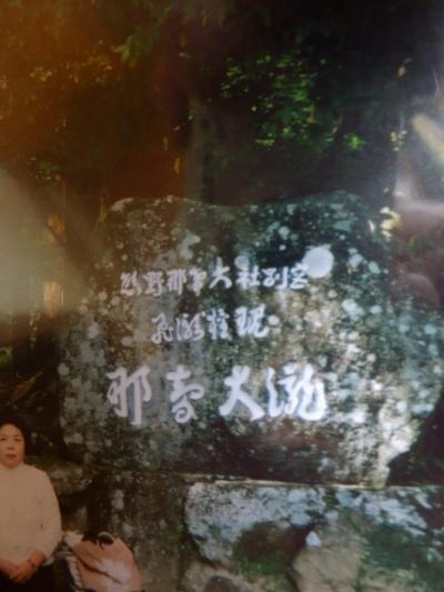 熊野路の旅の目玉の一つである那智の滝へと向かう,JR紀伊勝浦駅から熊野交通で那智山へ、バスは途中紀伊那智駅を経由するが特急が停車しないので勝浦から乗車約三十分で那智大滝前につく、この滝は飛龍神社の御神体だそうだ、御神体としてはわかりやすいです。少し進むとなんとここからさは有料になっていた、わずかな料金ので御寄進、滝ツボの前に観覧台があり雄大な落差のある滝を見物できた