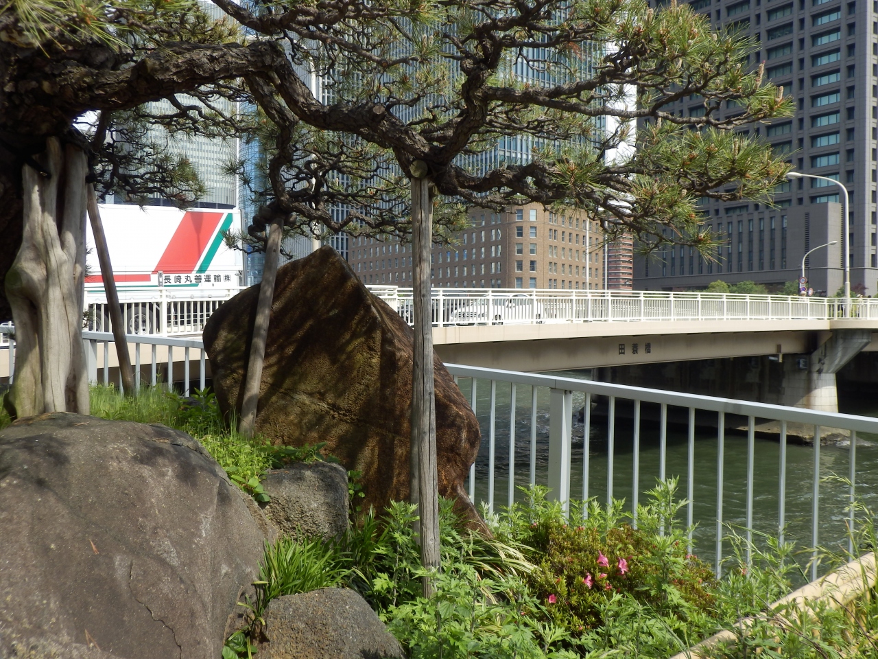 中之島の北側を流れている堂島川に架かっている橋の一つ、大阪市中央公会堂の北にある、橋上の両側にプランタ―がすえつけられて季節むの花が植えられている、何度もとおっているが植えられていない時が多い、日本の名橋50選になっているらしいが通るだけだと特徴などは判らない、