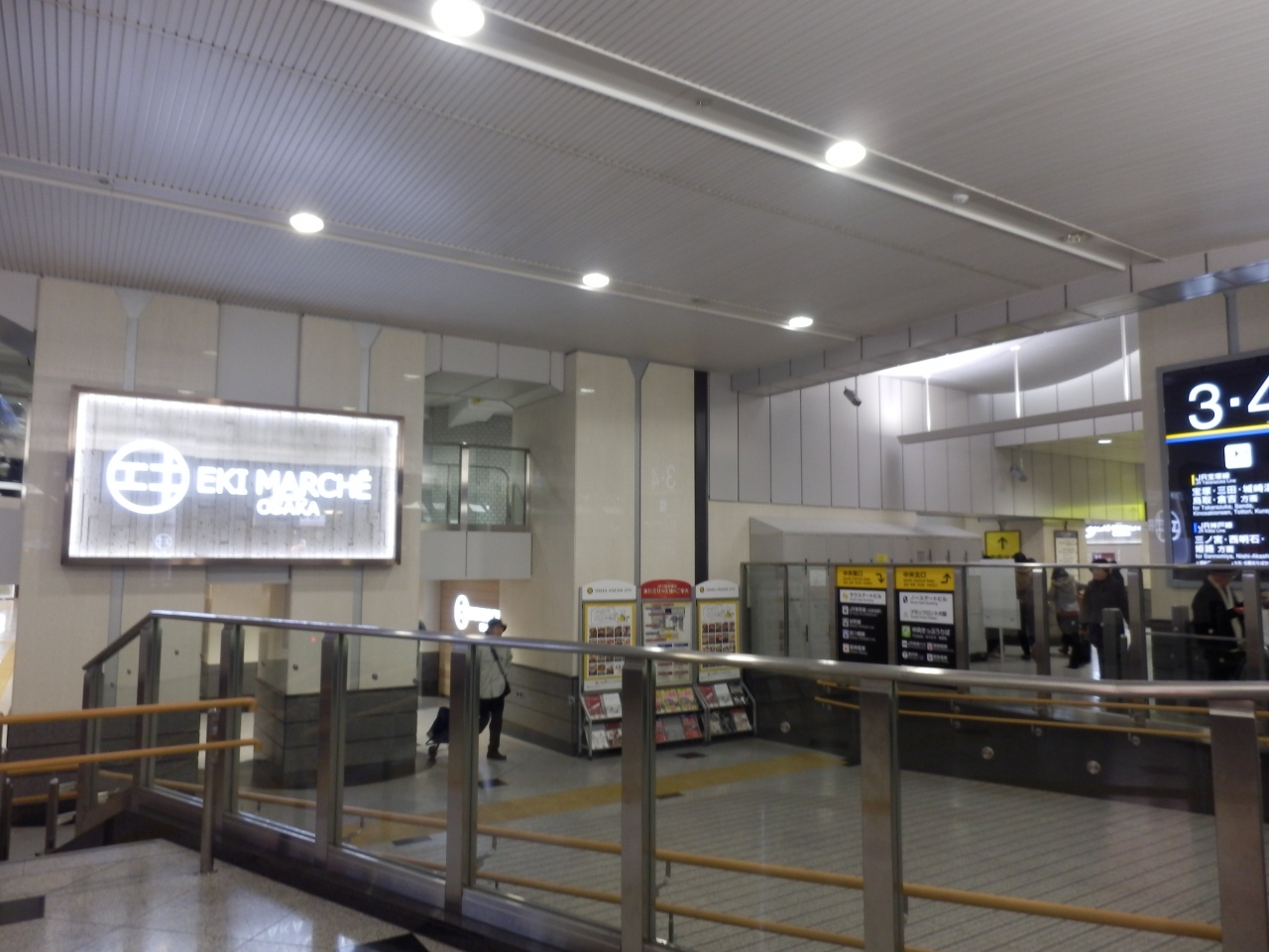 大阪駅周辺は大ショツピング街が構成されているその中でこじんまりとしているのが駅マルシェ、小さいが駅からすぐに入れる専用改札口がある、定期かカードでないと出入りできないかも、乗車券の場合すぐ前の桜橋口改札を出るとすぐ右か゜入り口、立地が良いのでにぎやかな雰囲気でした、
