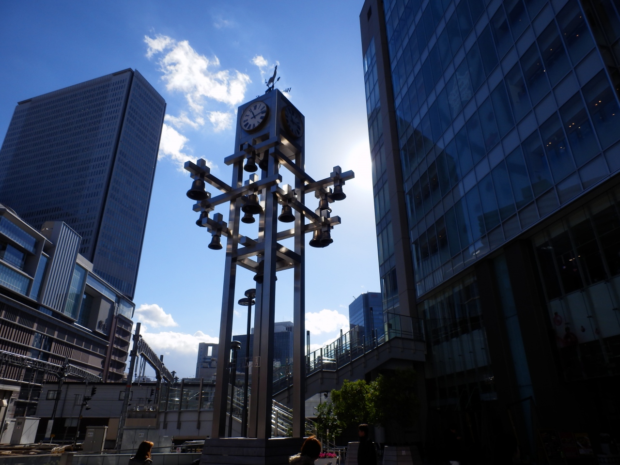 阪急梅田駅からJR大阪駅北側への陸橋を渡り終えた所にある広場、二階に相当する場所。両駅間をとおり抜ける場合便利なので必ず通るこの広場に時計塔がありジャスト時にはカランコロンと鐘が鳴っています、待ち合わせによさそうだが人どおりが多くあまり利用している人はいない