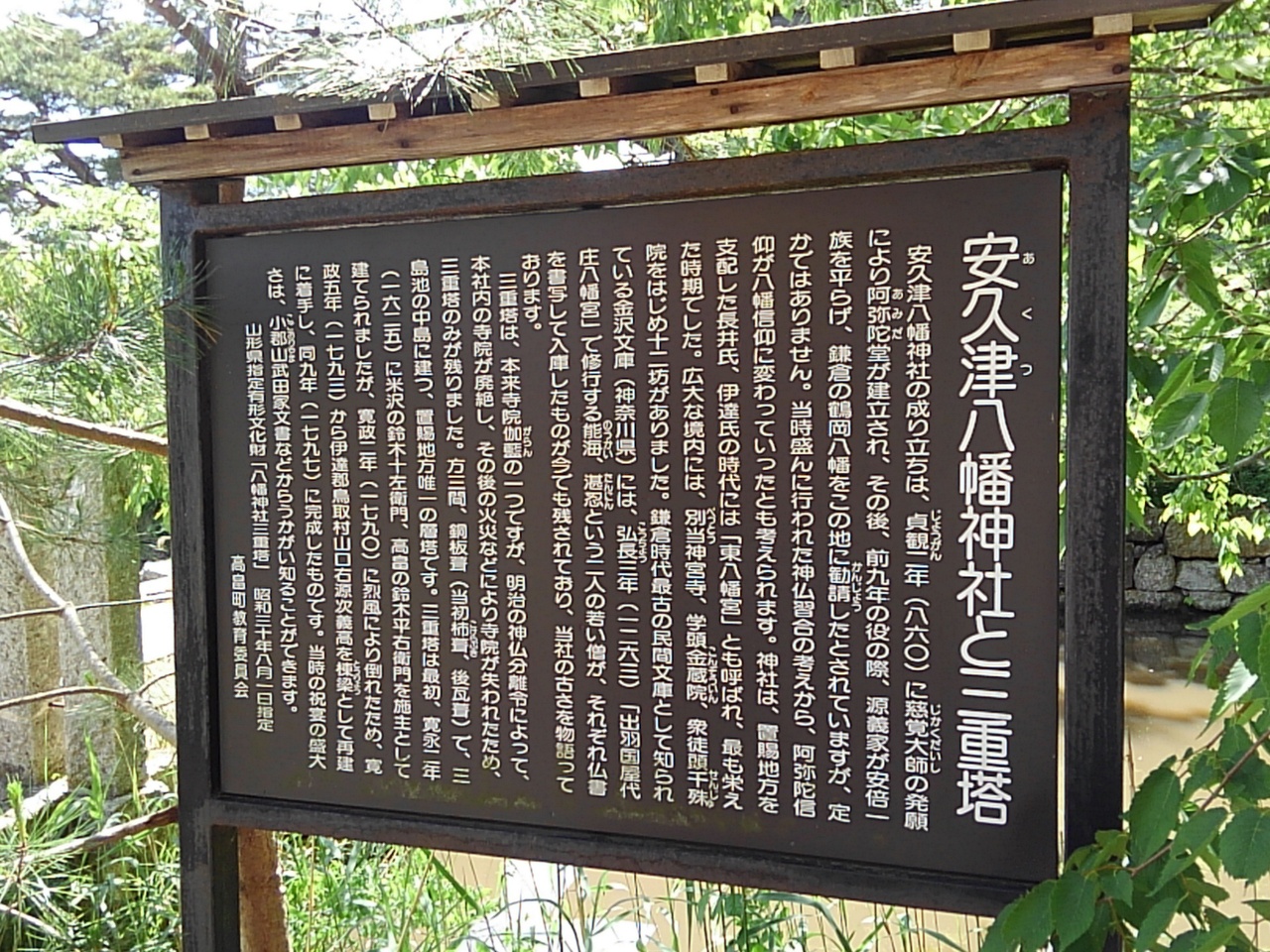 鈍い私は、この組み合わせに違和感を覚えませんでしたが、境内の案内板を読んで、三重の塔は本来寺院にあるもので神社には馴染まないことに気づきました。