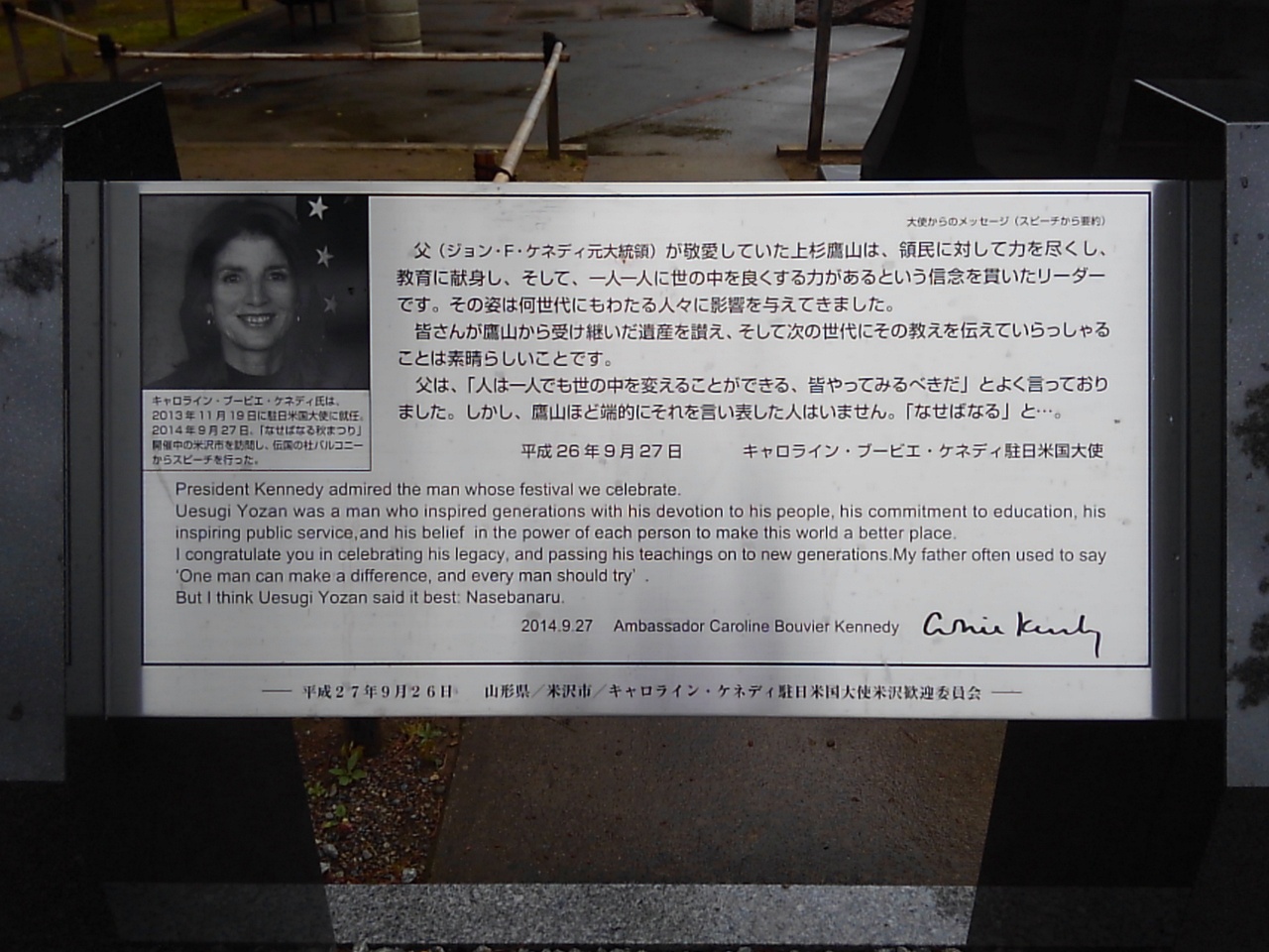 でも、最近、ケネディ駐日米国大使のメッセージを記した写真入りの案内板が脇に添えられたので、鷹山公も少し気を良くしたかもしれません。- 旅行時期