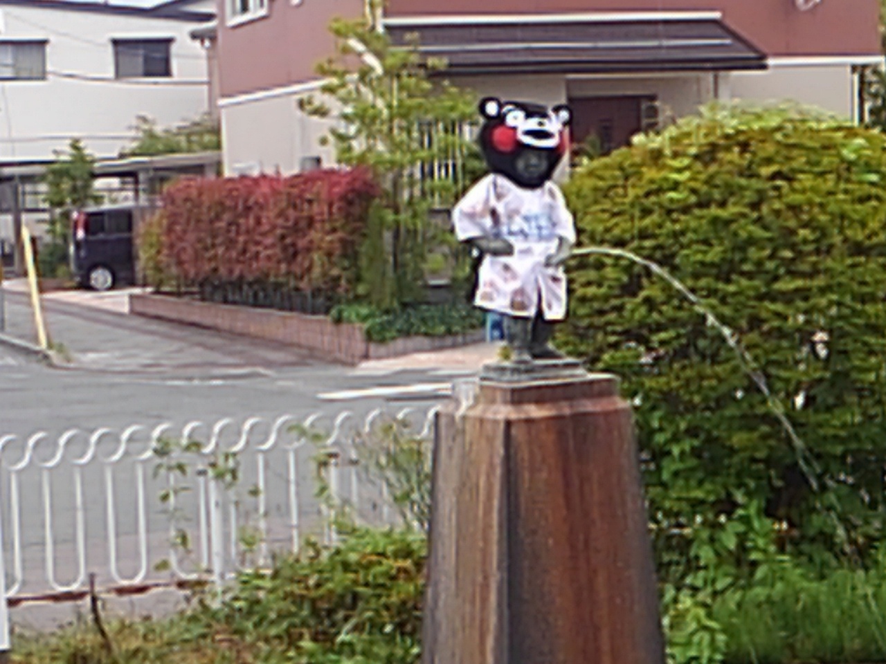 この小便小僧は、近くの服飾専門学校の女子生徒が四季ごとに衣裳を着せ替えてくれていて、たびたびマスコミで衣裳が紹介されていました。