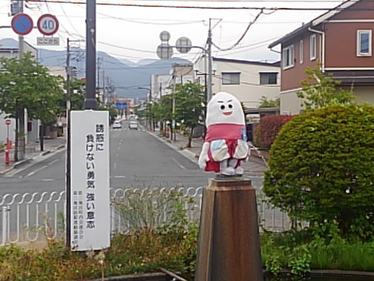 駅前には特に何もありませんが、ただひとつ、池に向かって放水する小便小僧の像が建っていて、この駅のシンボルになっています。