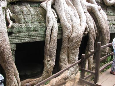 午前中アンコール・ワットを観光した後、妻が是非行って見たいというので、昼食後、ホテルでの休憩を省略して真っ直ぐ向かいました。エアコン付きの専用車だったので、強い日差しも気にならず、未だ水牛が活躍している耕作風景や高床式の住居を眺めながら、のどかな道中を楽しみました。