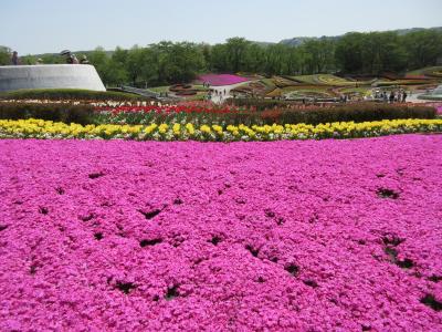 GWに帰省した娘を連れて15年ぶりくらいに訪問したら、フラワーフェスティバル開催中でチューリップと芝桜が見頃でした。