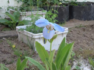 今回は、ペンションビレッジ内を散策して庭の花を観賞させていただきましたが、1軒のペンションの庭先に「ブルーポピー」が咲いているのを見つけました。
