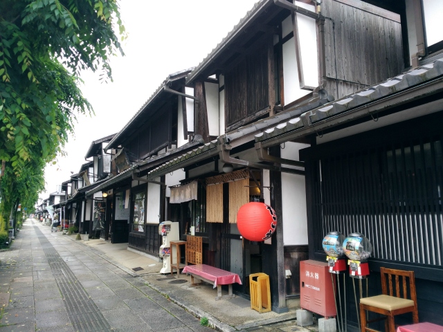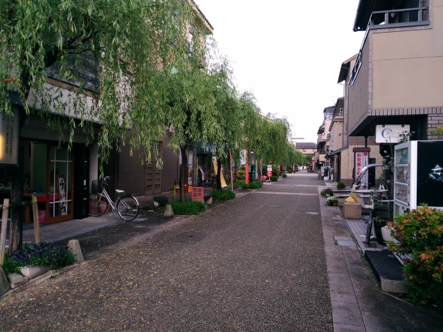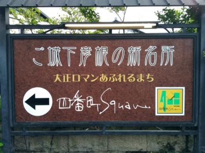 彦根城の南側の中堀にかかる京橋を渡ってすぐ真っ直ぐ伸びる道で、江戸時代の城下町をイメージして白壁に黒の格子に統一された建物に色んなお店が立ち並ぶロードで歩いているだけでも目を楽しませてくれる良い街並みでございました。