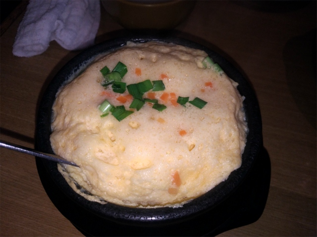 梅田の地下街を昼呑みでぶらぶらしてて初めて入った大阪第四ビルの地下二階にあるお店ですが、おかみさんみたいな方が片言の日本語で色々楽しく接客してくれて良かったです。マッコリ飲んで色々おつまみを食べましたが、ナムルも美味しかったし、なによりオムレツと茶碗蒸しのあいのこのような「玉子チム」が美味しくおすすめしたい料理でした。