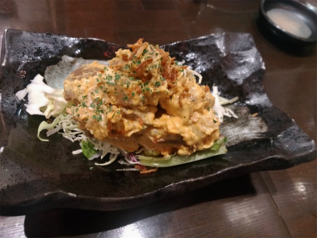 大阪の第三ビルの地下二階にあるお店で友人たちと三人でふらっと初めて入ったお店でしたが、店内はゆったりとした雰囲気で接客の方々も丁寧で良かったです。お酒のおつまみとしては、魚系のお料理がどれも美味しくて友人も私も満足で良かったです。