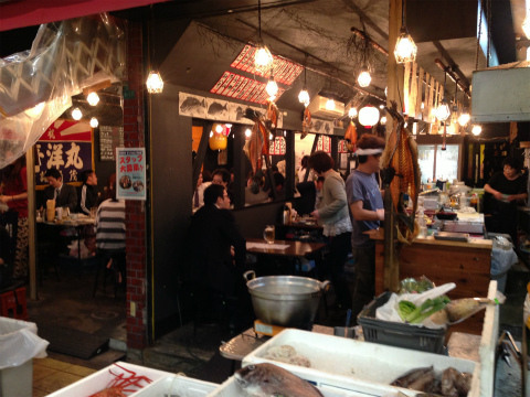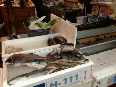 店先にたっぷりの出汁をとった後の煮干をおいてあって
