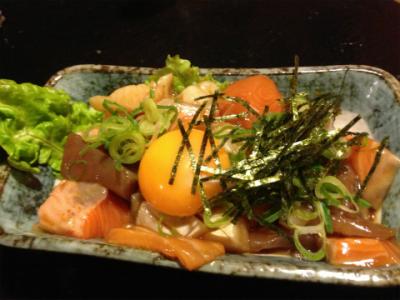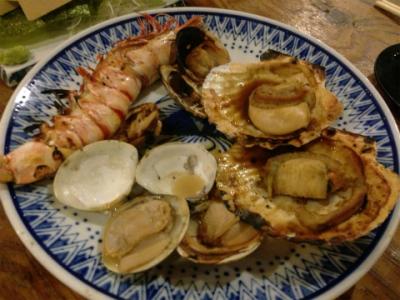 そして酒飲み二人で、刺身に焼き物に天ぷらと