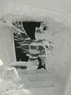 私が行った冬の時期は、こおり彫刻が小さなかまくらの中に