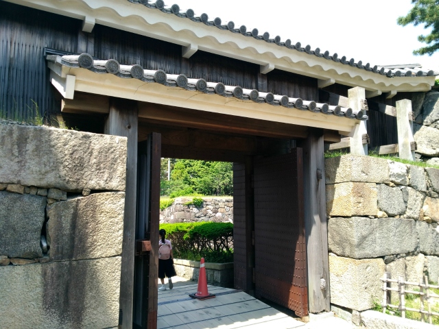 ロープウェを降りて坂道を登って行き、総門(通称:黒門)と呼ばれる開所の門をくぐり更に坂道を登っていくと数段の階段の上にこの門があります。