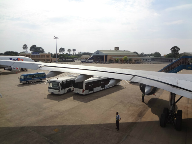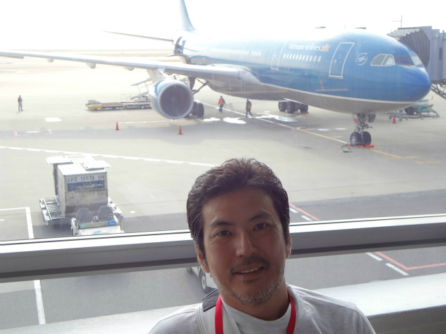 ホーチミンに到着して、飛行機のタラップを前後とも利用し