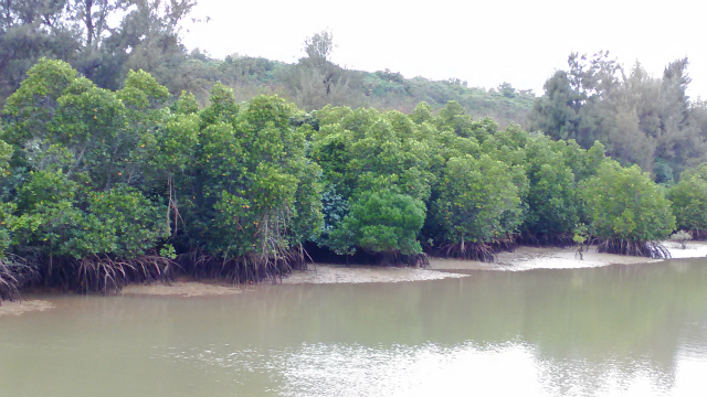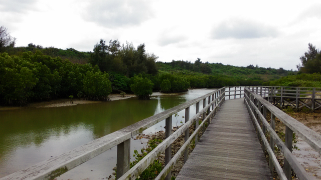 宮古島の東側道路沿いからすぐの所にあるマングローブで、綺麗な遊歩道が整備されていていい感じで散歩が出来ました。