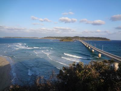 朝に散歩したときは、施設裏から角島大橋が綺麗に見えてました。