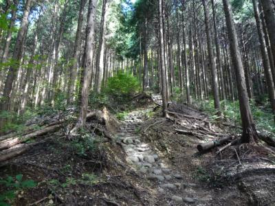 ちょっとわかりづらいところで山道に入って山頂へです。