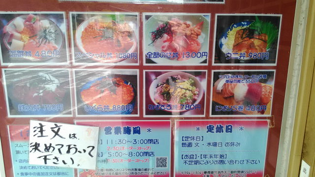 入り口には写真入りのメニューが張ってあって「注文は決めておいてください」との貼紙がしてあった。