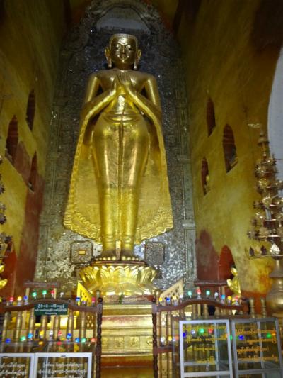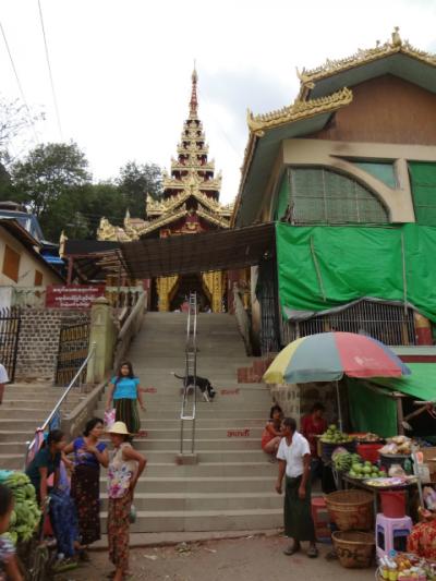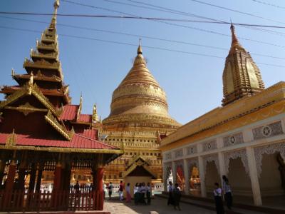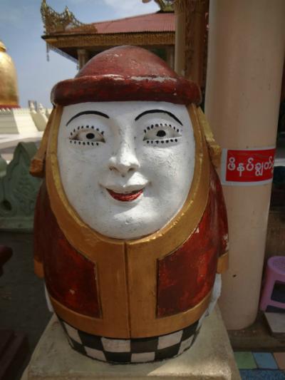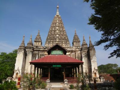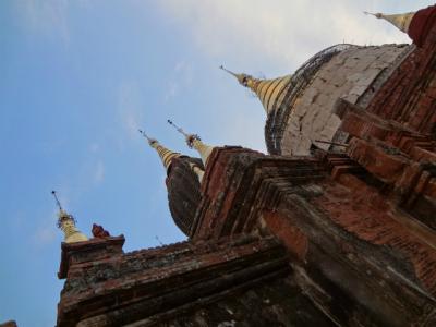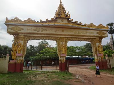 ミャンマーではあまりお見かけしない形の寺院で、真ん中の仏塔と言うのか何というのかわかりませんが、それの装飾なんかが綺麗で印象に残っています。