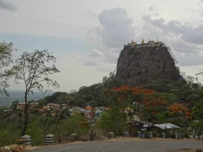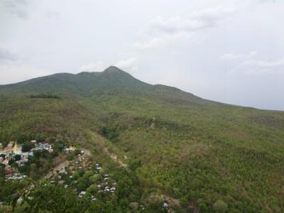 バガンの街から車で行くしかなくて片道一時間半くらいかかります。麓からの景色とは裏腹に山頂はちょっとしょぼいです。