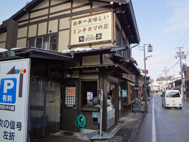 店の上に大きな字で「日本一美味しい ミンチカツのお店」って書いてあってすぐわかります。