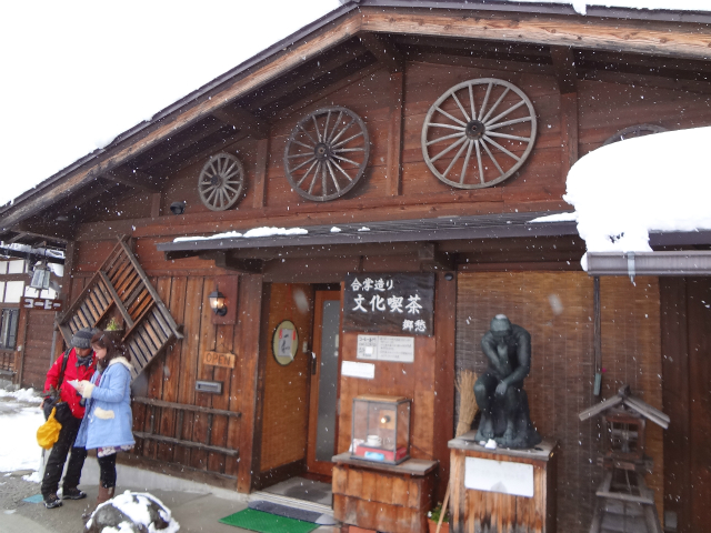 案内所自体が合掌造りになっていて、中はそんなに大きくないので、けっこう人でごったがえし状態でした。