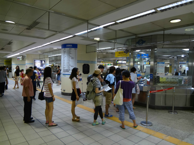 有人の乗車券販売所は手際が悪く長蛇の列が出来ていました。- 旅行時期