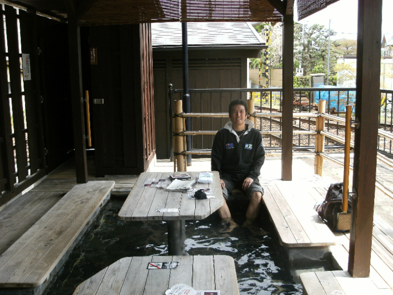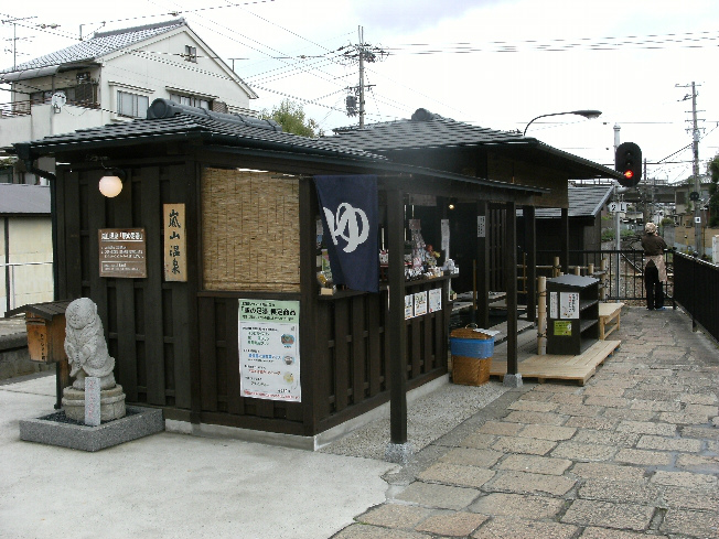 嵐電(京福電鉄嵐山線の愛称)のホームに嵐山温泉の足湯がある