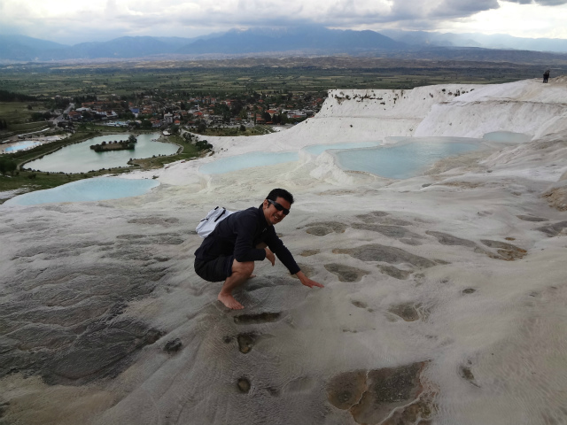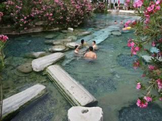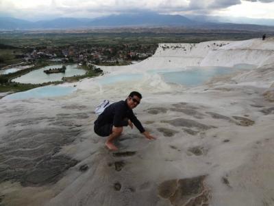 源泉の温度は60℃あるが石灰棚あたりは足をいれても熱くない、ぬるま湯位です。