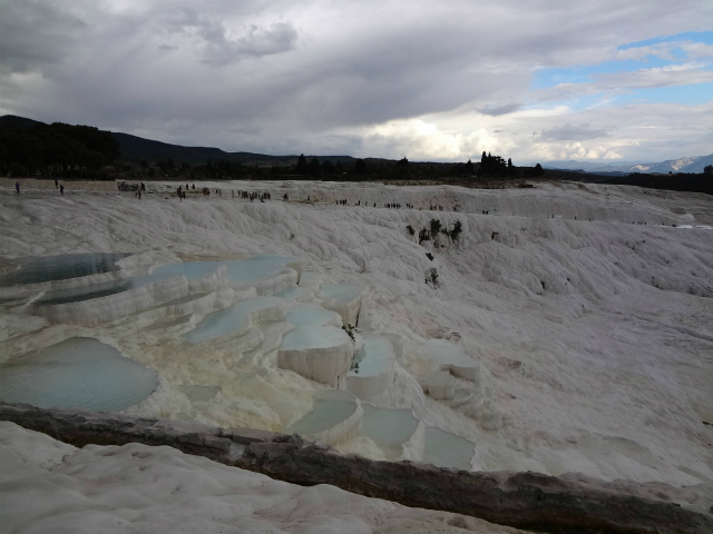 段々になってる温泉溜はブルースカイのような綺麗な色で