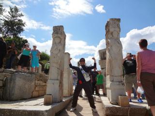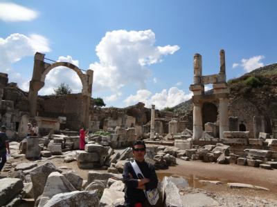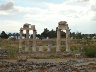 城門の遺跡をくぐって入り体育館跡や劇場跡など、