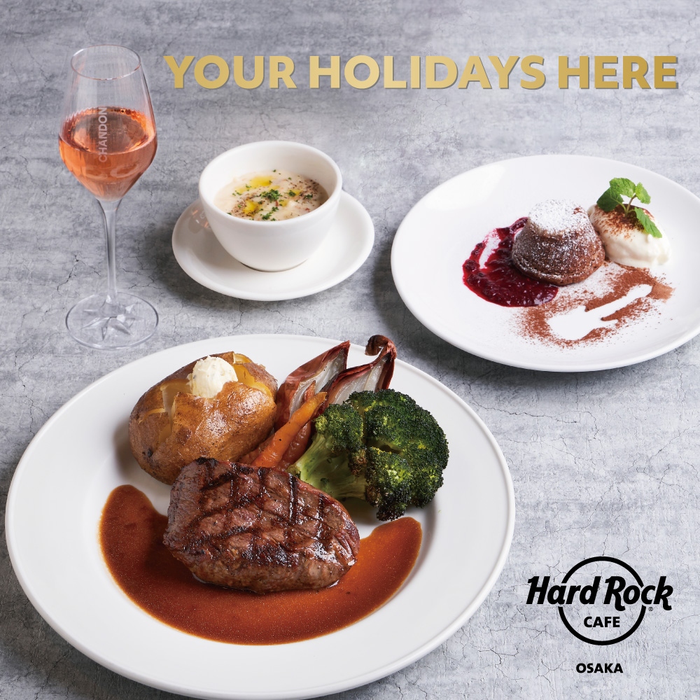 2023年日本のハードロックカフェ(東京・上野駅・横浜・ユニバーサルシティウォーク大阪)でYour Holidays Here!!ホリデースペシャルコースを12月25日までの期間限定販売