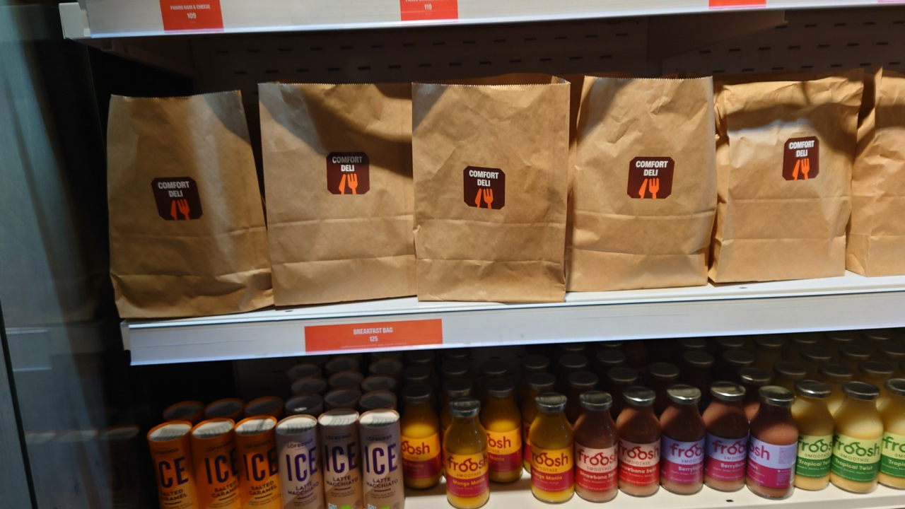 フロント前でサンドイッチや朝食やドリンク購入出来ますが、ハムチーズサンドがNOK109(約1600円)朝食パックNOK125(約1800円) ドリンクNLK45(約650円)