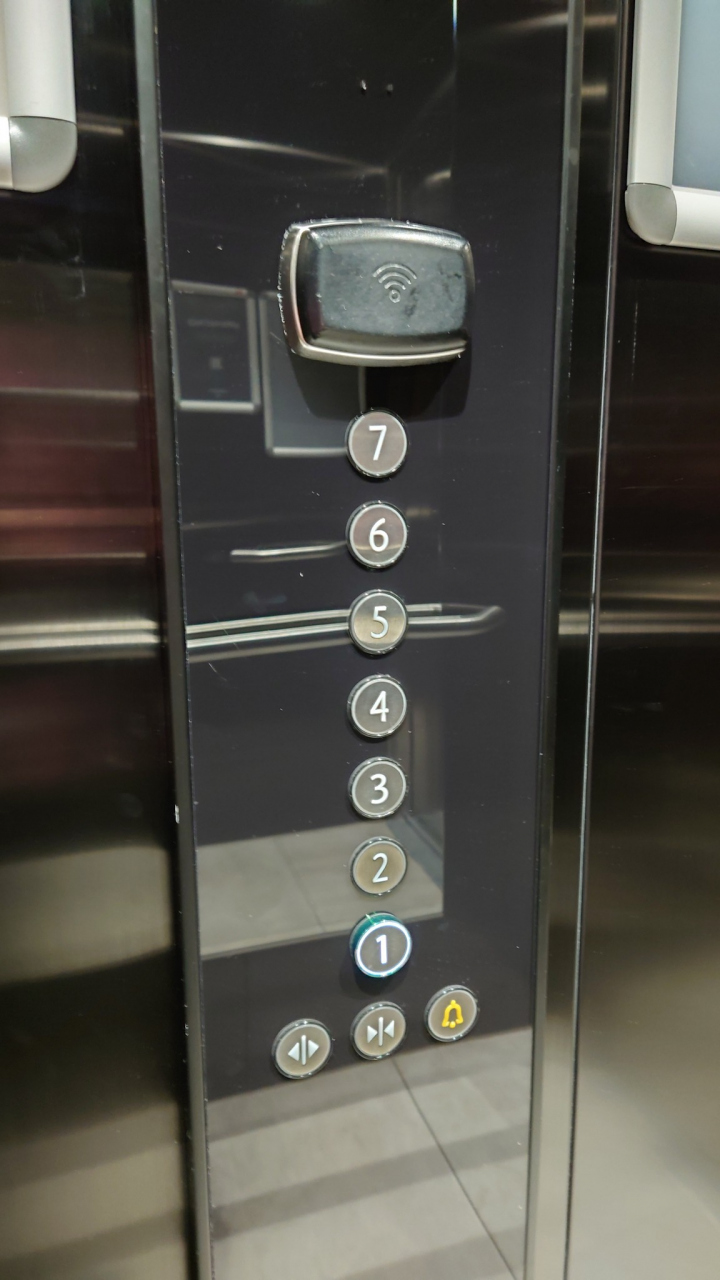 エレベーターは目的階押してカードルームキーをタッチしないと動きません。