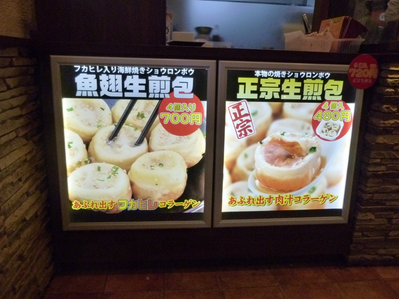 メニューは基本2種類(正宗生煎包4個480円 6個\720・フカヒレ生煎包4個\700 6個\1050)